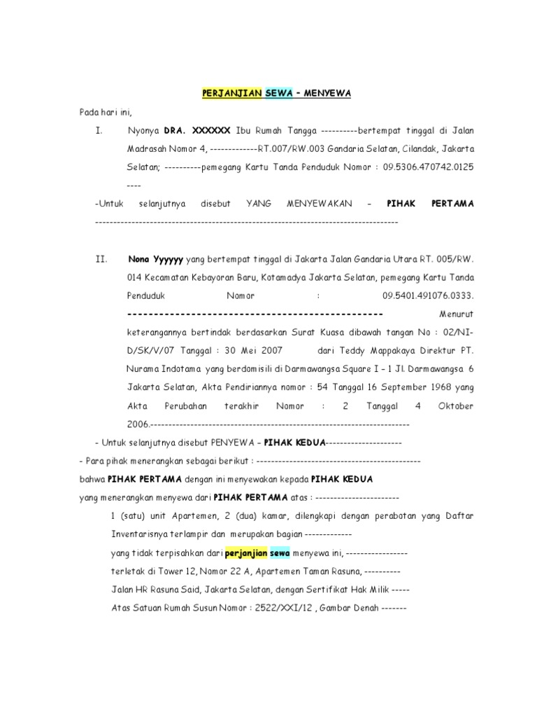 Contoh Surat Perjanjian Sewa Menyewa Rumah Susun Pdf