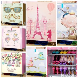 Rak Sepatu Motif Gambar Kartun 4 Susun Shoes Rack 4 In 1 Layer Dust Cover Organizer Rumah Interior