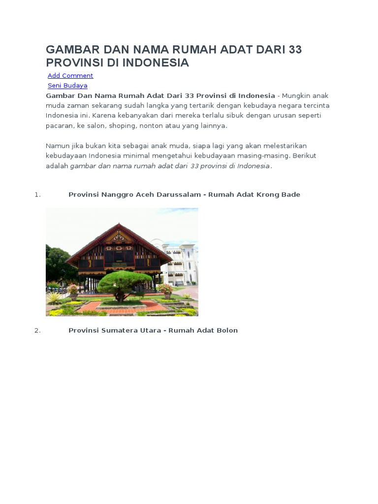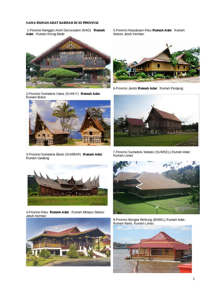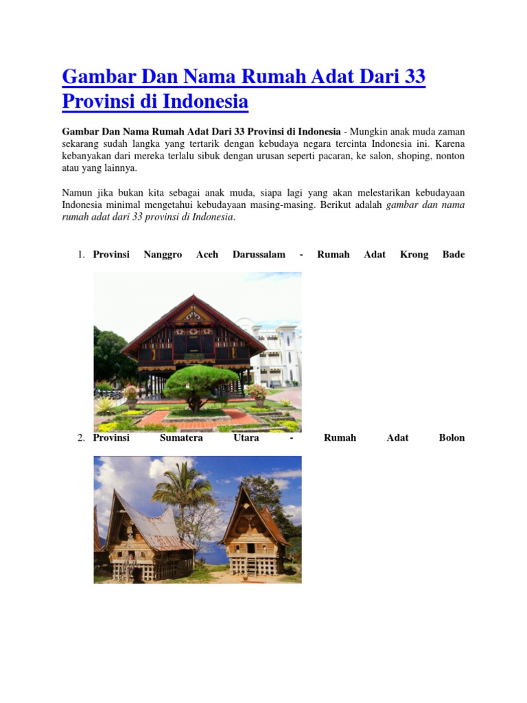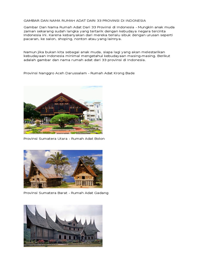 Gambar Dan Nama Rumah Adat Dari 33 Provinsi Di Indonesia Docx