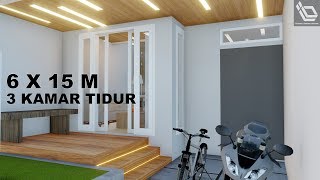 Desain Rumah Minimalis Sederhana 6x15 Meter 3 Kamar Tidur 1 Lantai Full Tampak Denah