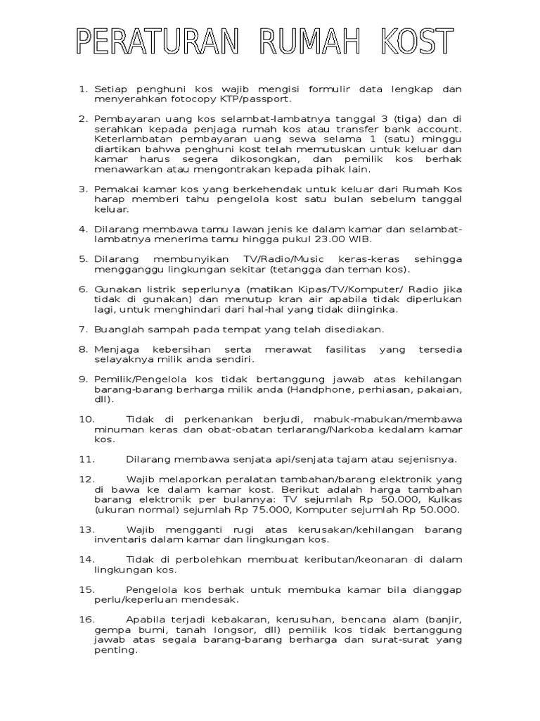 Tata Tertib Dan Peraturan Penghuni Kost Docx Document