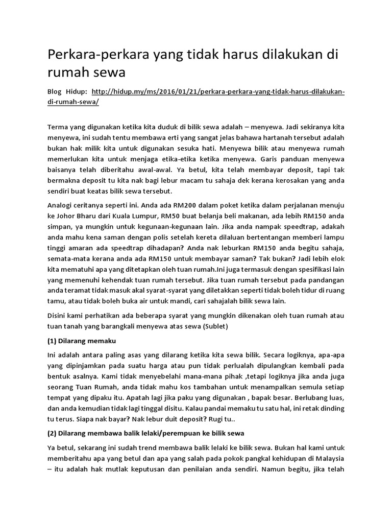 Perkara Perkara Yang Tidak Harus Dilakukan Di Rumah Sewa 1