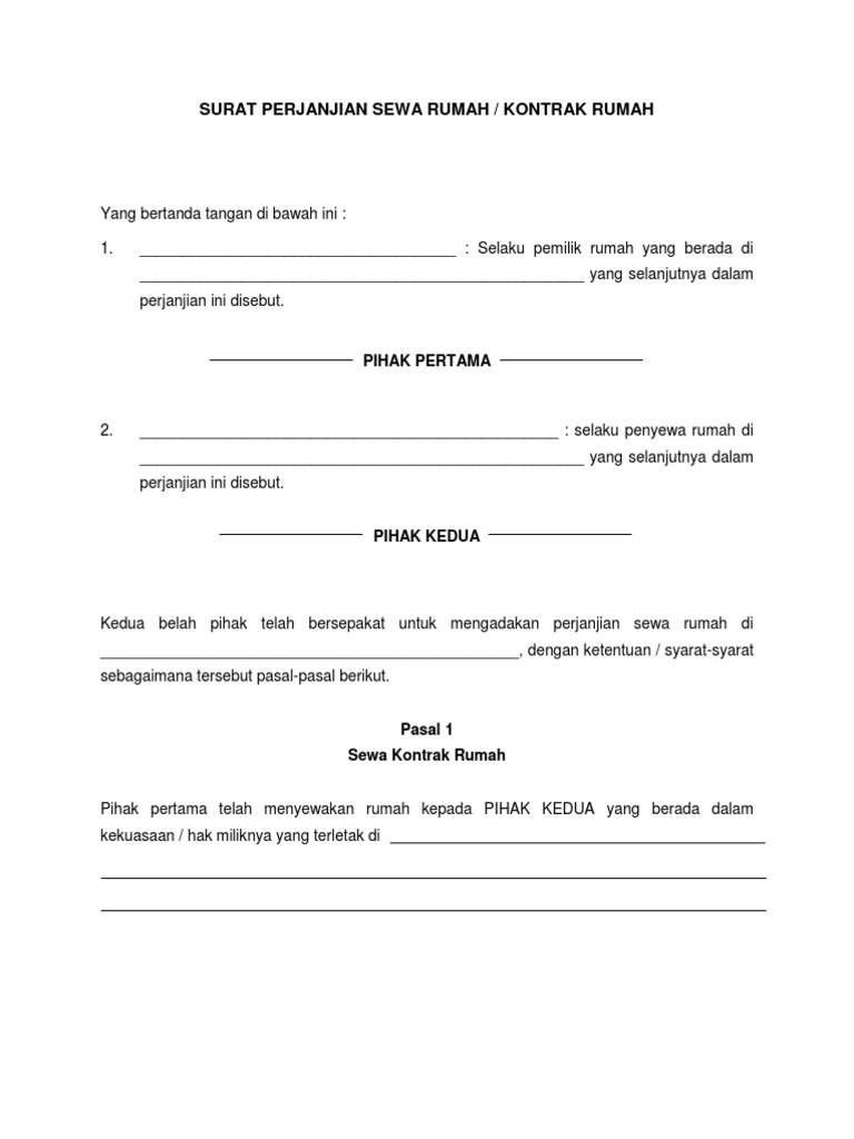 Contoh Surat Perjanjian Sewa Rumah Pimilik Wajib Buat