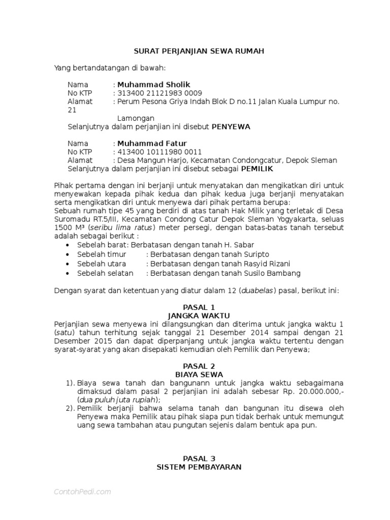 Contoh Perjanjian Sewa Menyewa Rumah Pdf Download Techspast