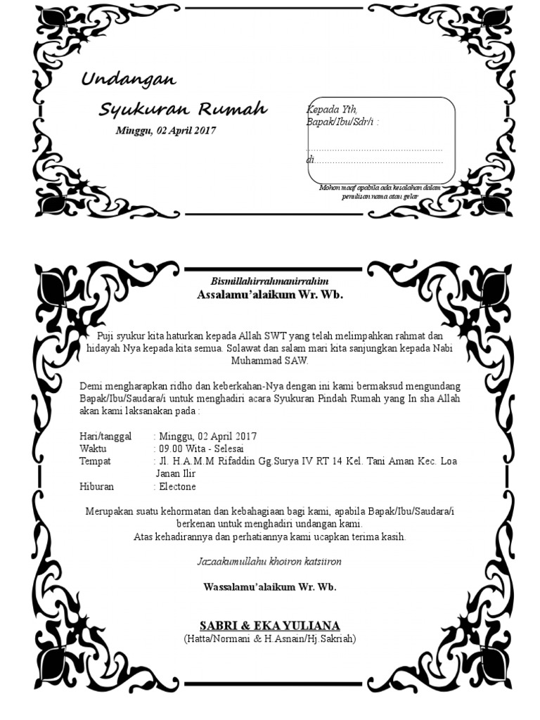 Contoh Surat Undangan Syukuran Rumah Baru Doc