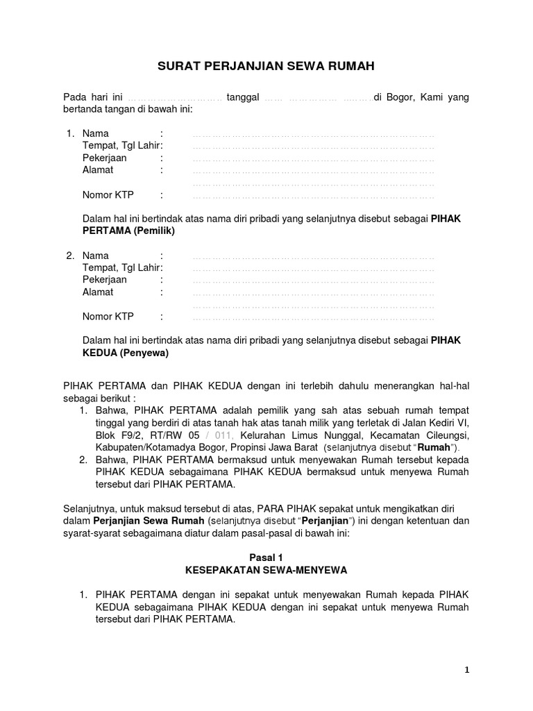Contoh Surat Perjanjian Sewa Rumah Kontrakan Pdf Doc