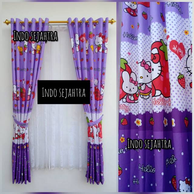 Gorden Karakter Hello Kitty Ungu Tirai Jendela Pintu Minimalis Murah Dekorasi Kamar Tidur Anak