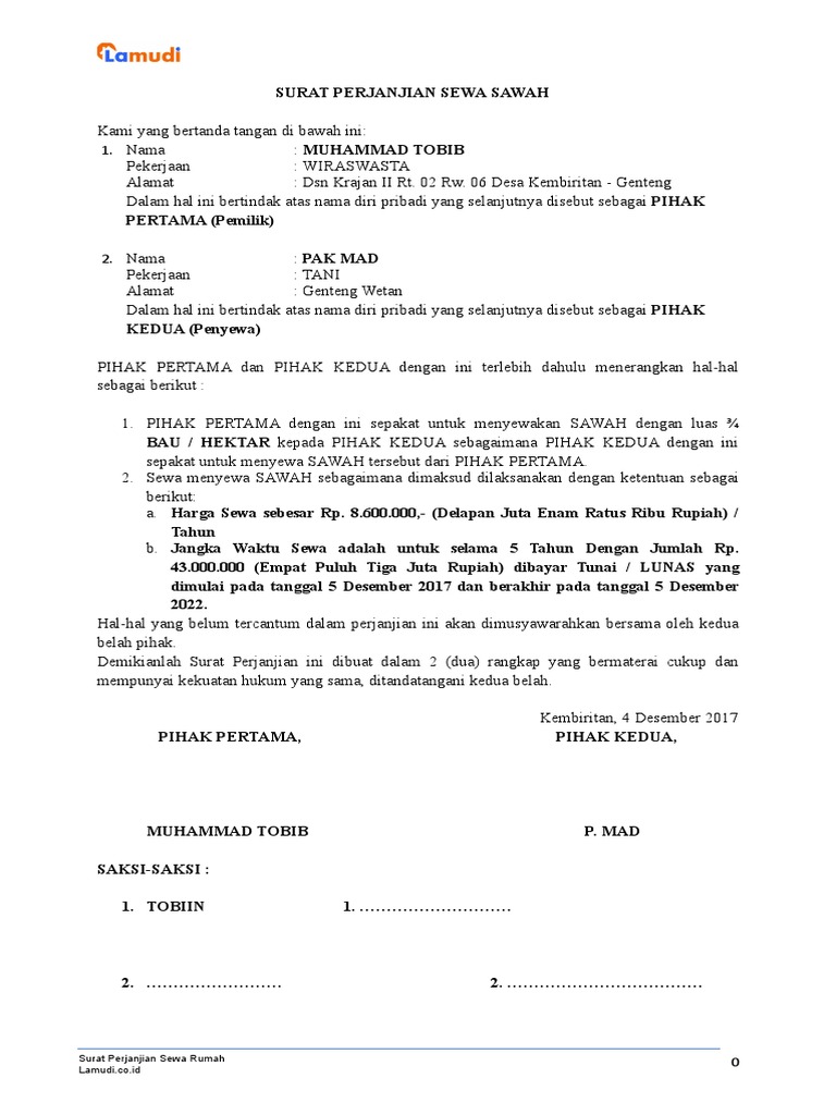 Contoh Surat Perjanjian Sewa Rumah Lamudi Indonesia