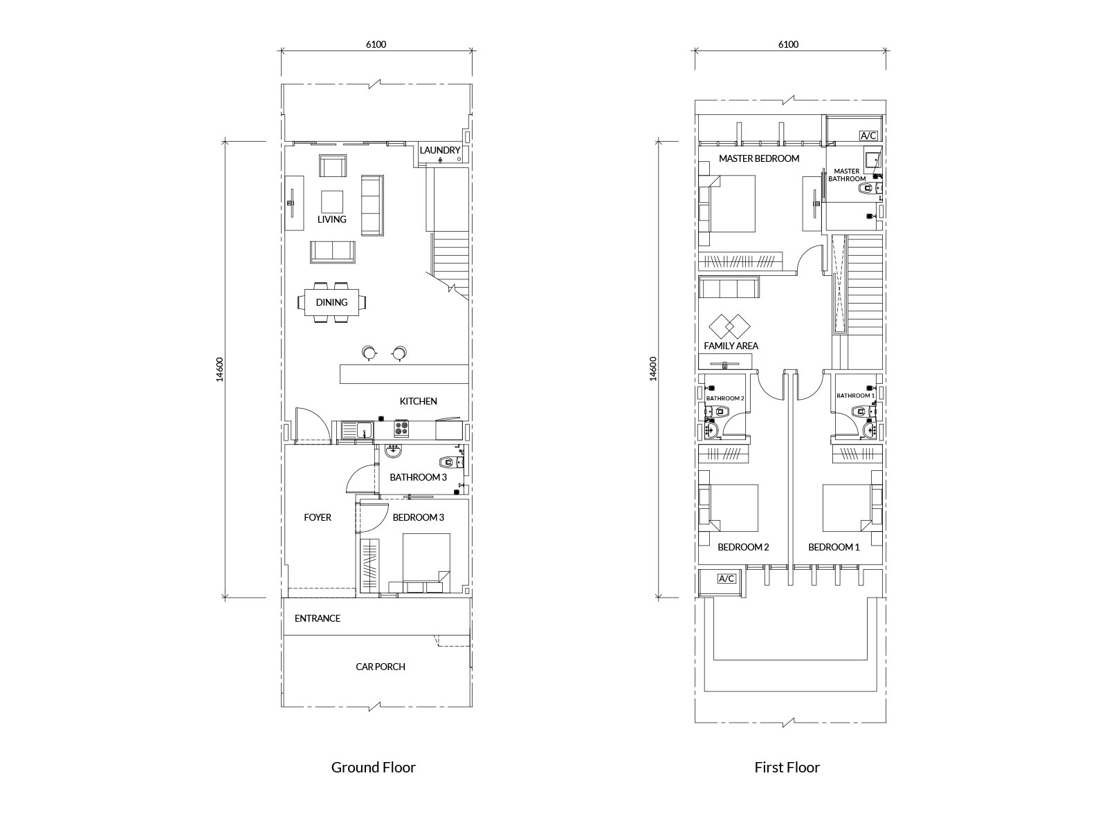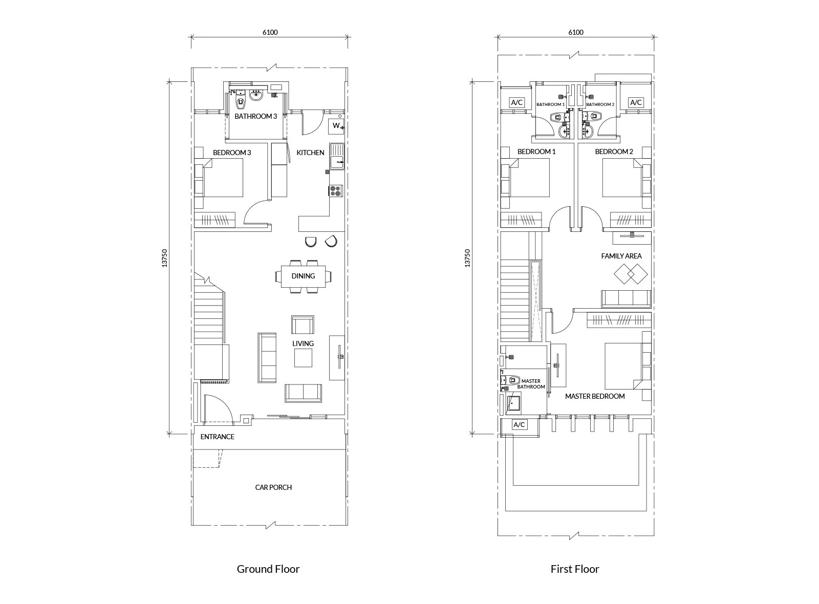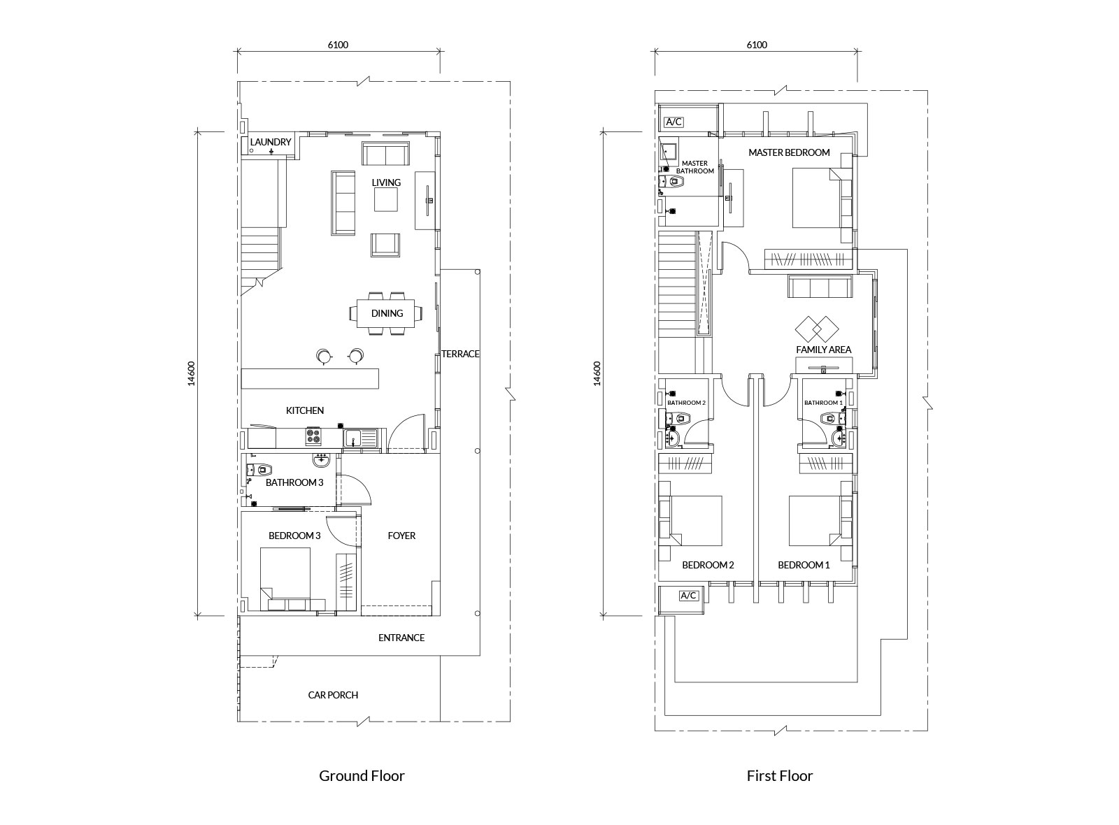 Design Rumah A1 07 3 Bilik 2 Bilik Air 40 X25 846 Kaki