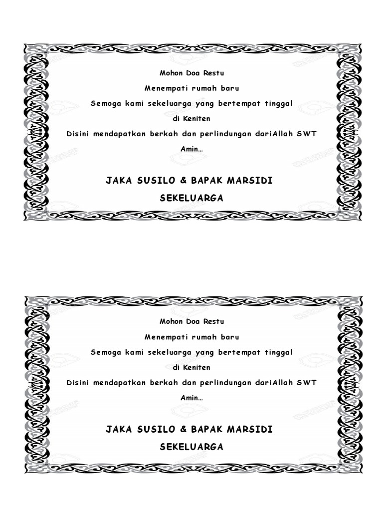 Contoh Surat Undangan Syukuran Rumah Baru Doc Rinto