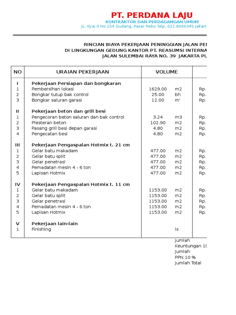 Surat Penawaran Harga Jasa Pengaspalan