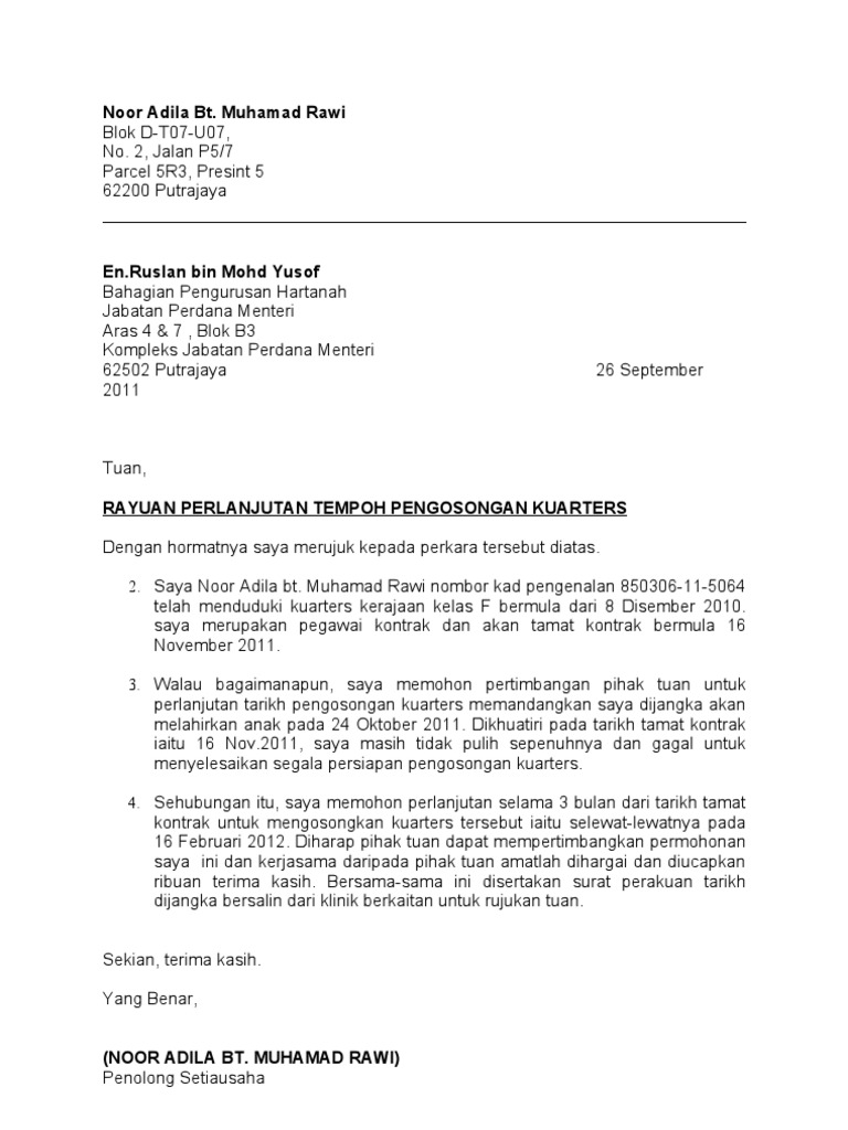 Surat Rasmi Permohonan Sewa Rumah Rasmi G